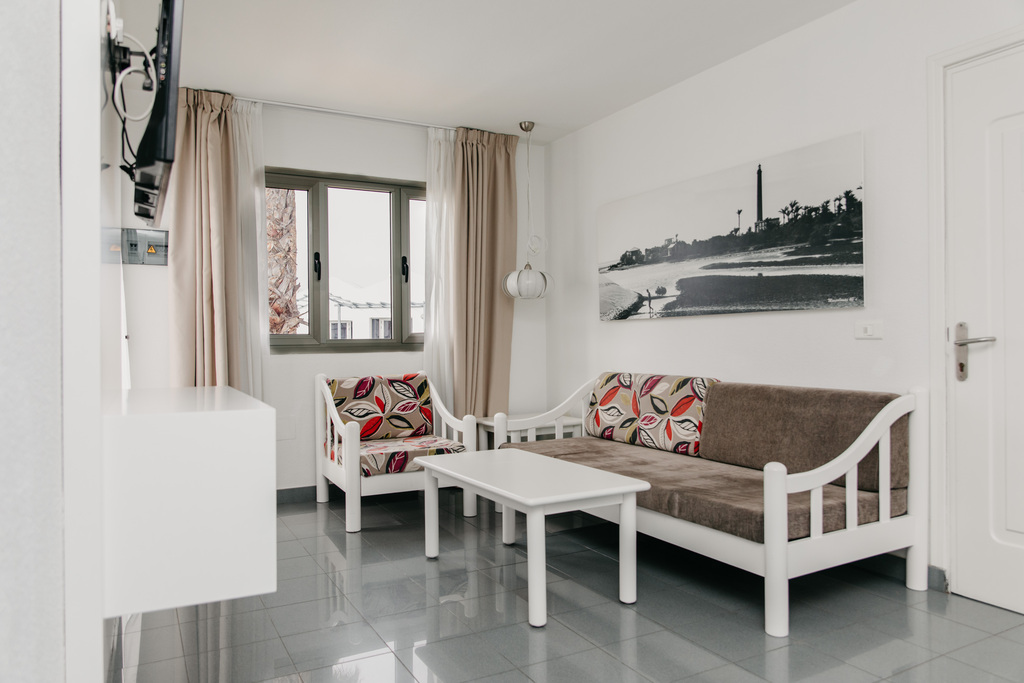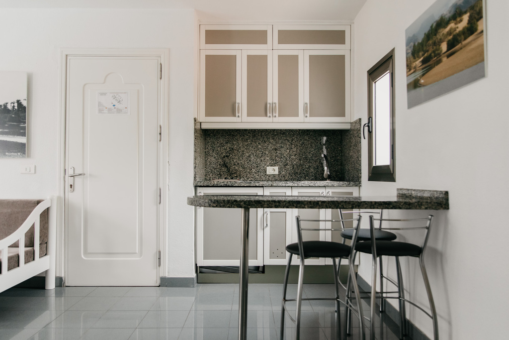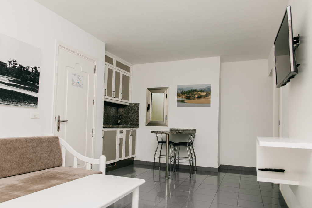 Apartamento de aprox. 35m2 compuesto por 1 dormitorio con aire acondicionado , baño con ducha y secador de pelo , terraza o balcón con mesa y sillas , pequeña cocina y salón con satélite TV
